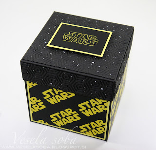Hmmmm, kaj dati v sredino? Kupila sem Lego kocke (tisti najmanjši paketek) in z njimi napolnila škatlico, ki sem jo sama naredila. Chewbacca pa stoji na vrhu in prosi za pomoč (v škatlici se skriva njegova bojna ladja).